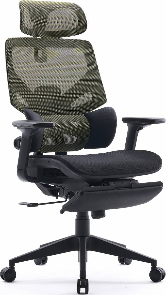 Кресло Cactus CS-CHR-MC01-LGNBK салатовый сиденье черный сетка/ткань с подголов. крестов. пластик подст.для ног