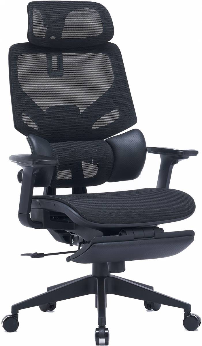 • Кресло Cactus CS-CHR-MC01-BK черный сет./эко.кожа с подголов. крестов. пластик подст.для ног
